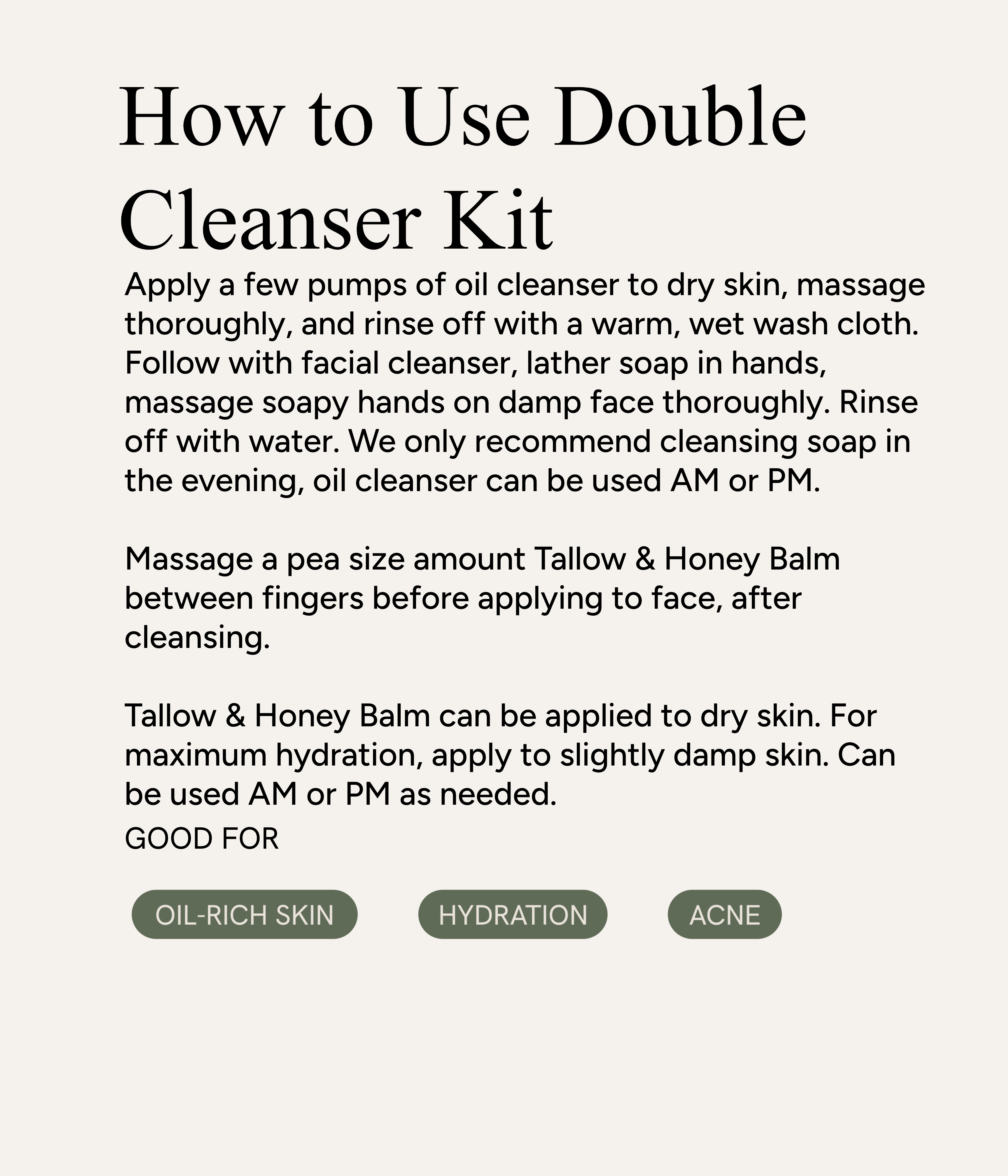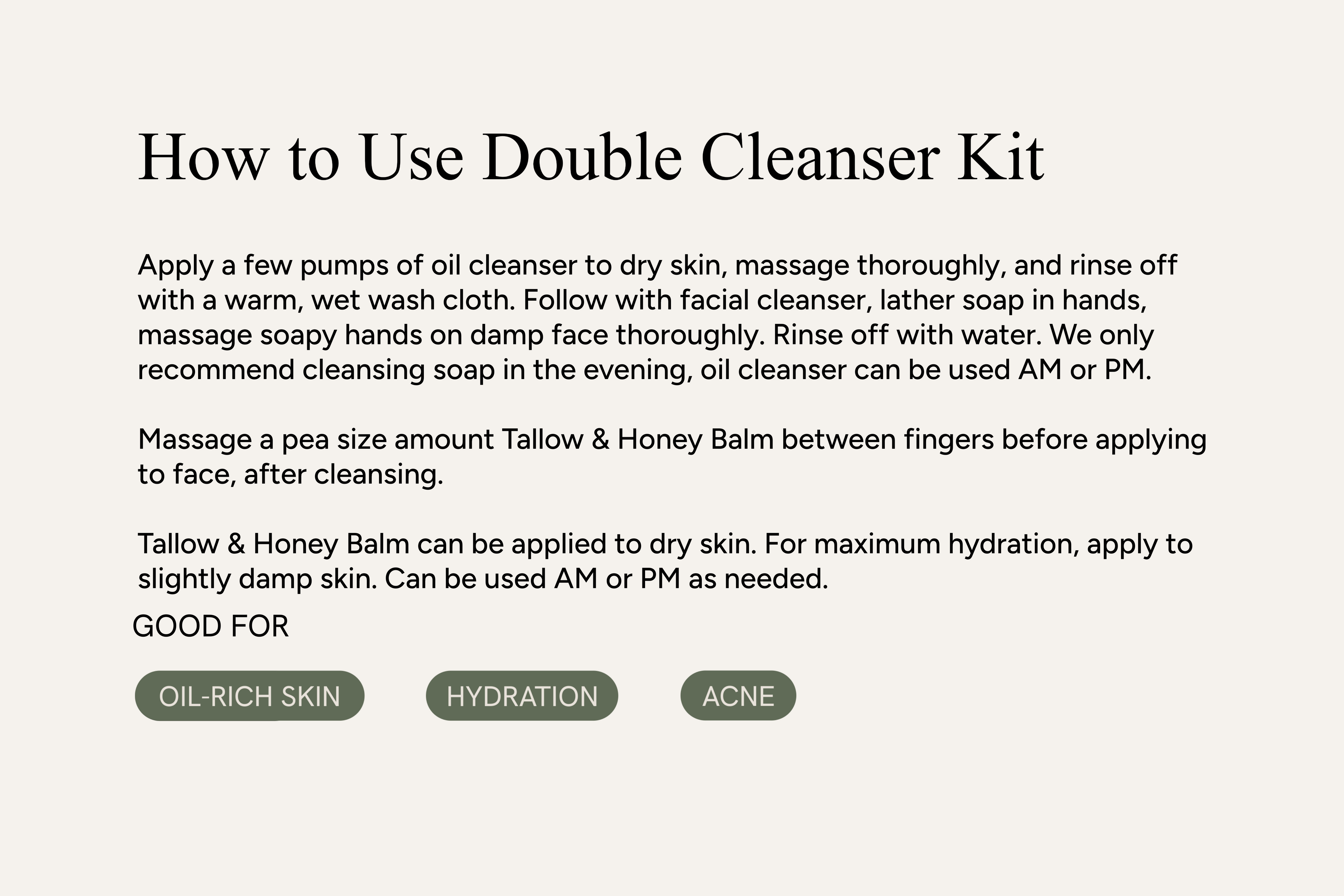 Follow up with Tallow & Honey Balm to hydrate, and moisturize.