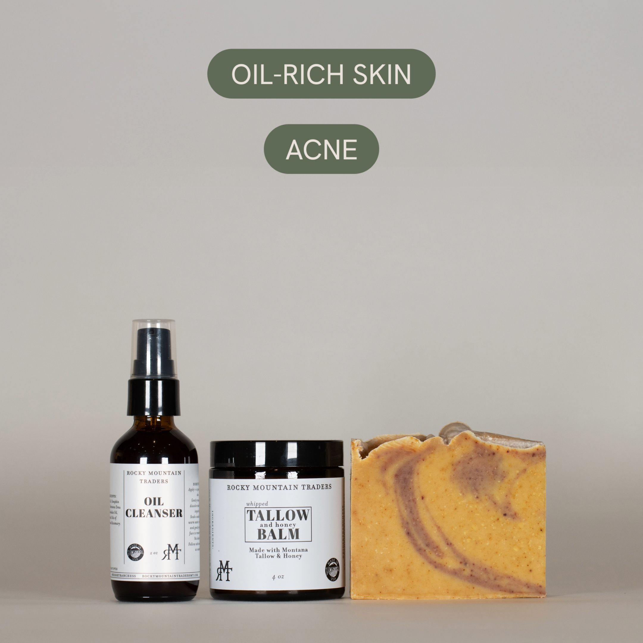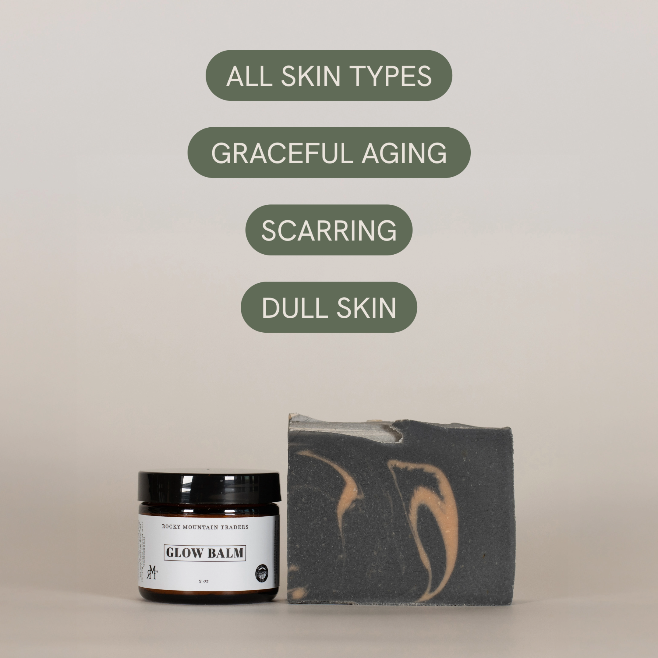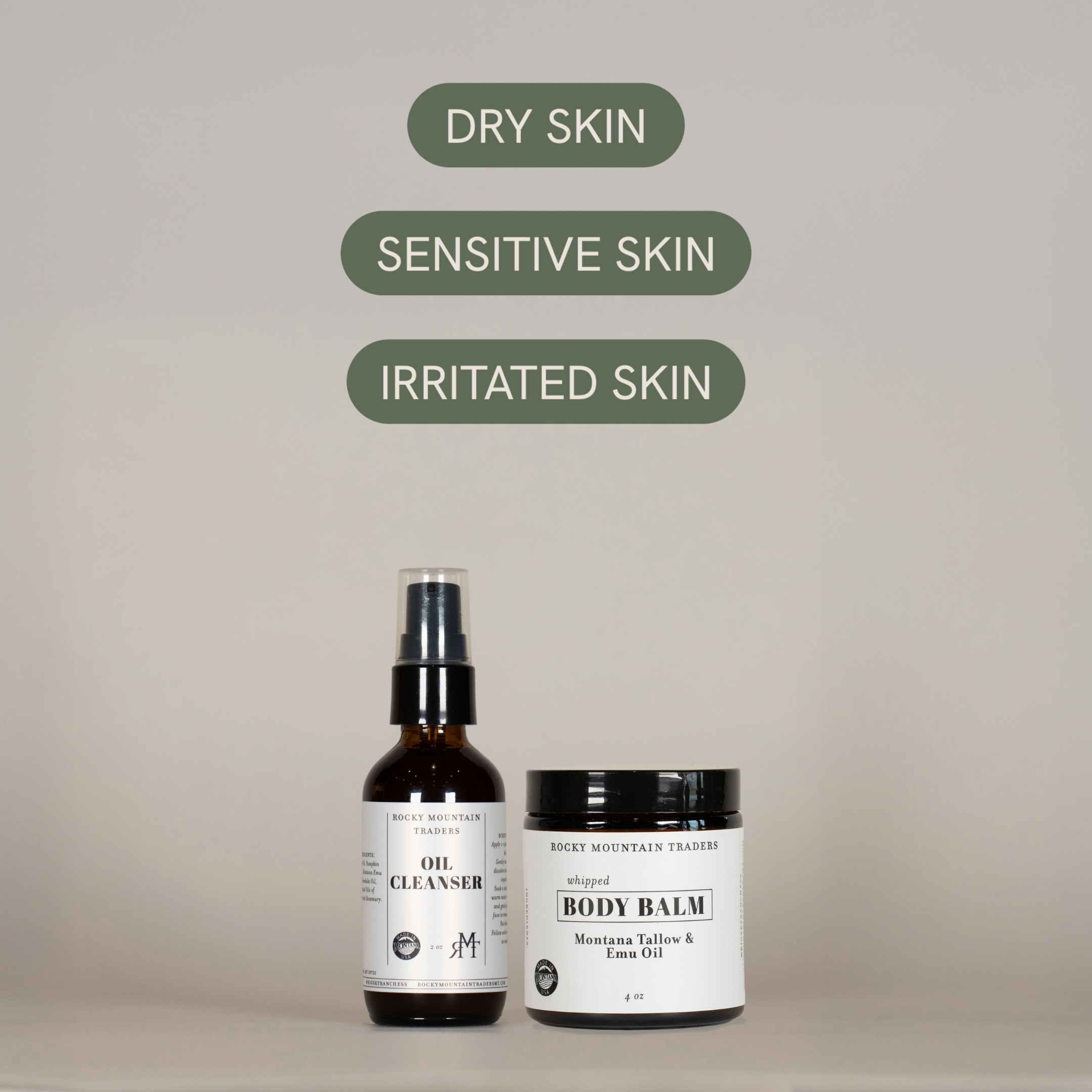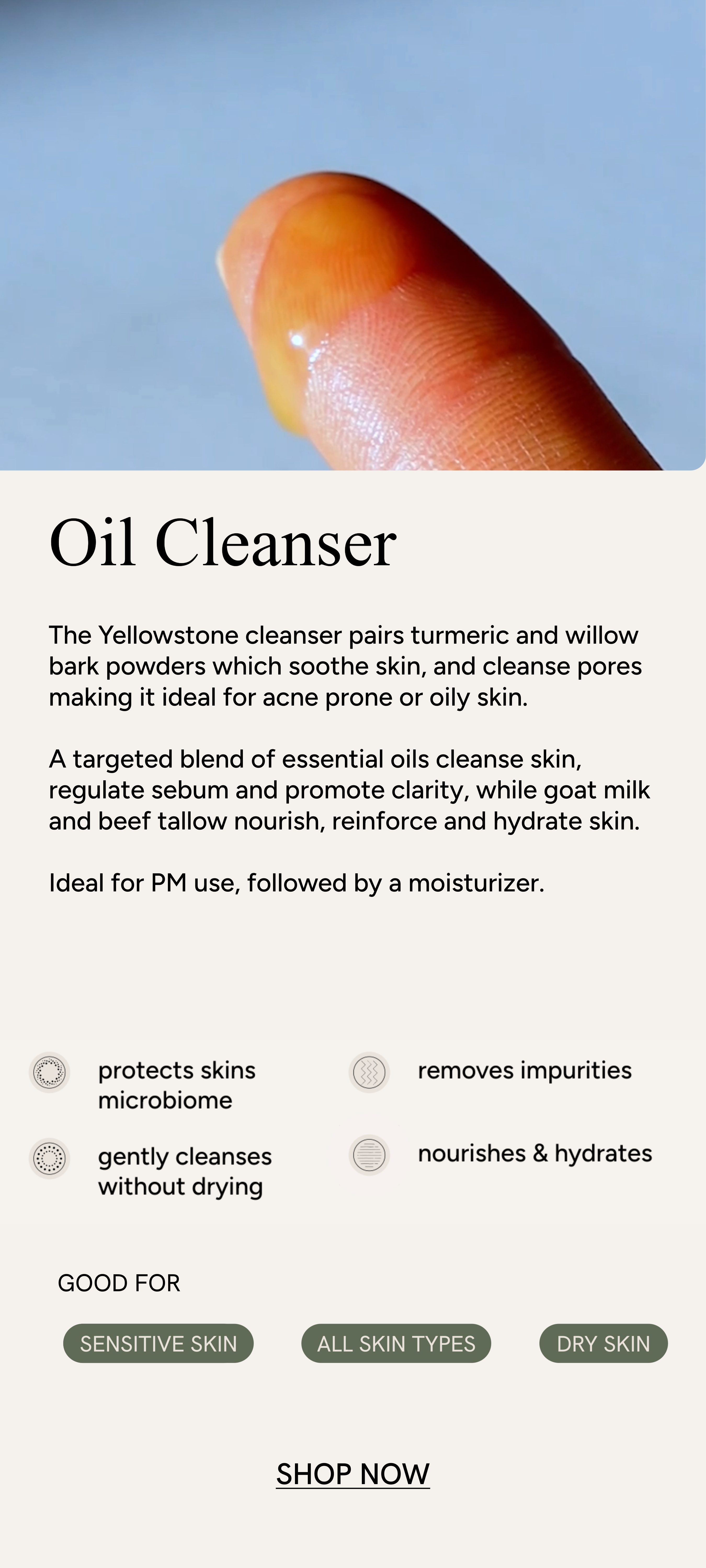 Our Base: Regeneratively raised, Grass fed & finished suet tallow from Montana cattle, chosen for it's compatibility with human skin; containing the building blocks skin can recognize and use.